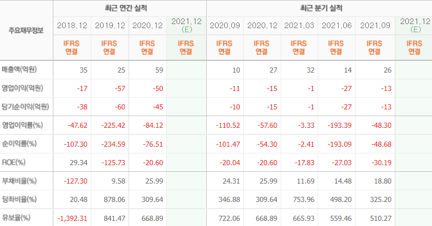 - 2021년 9월 전년동기 대비 연결기준 매출액은 125.5% 증가, 영업손실은 20.7% 증가, 당기순손실은 33.5% 증가하였으며, 인공지능 플랫폼의 확장, 정부기관의 수요 증가, 기존 제조업, 유통업 등 다양한 산업군의 수요가 예상되고 있습니다.